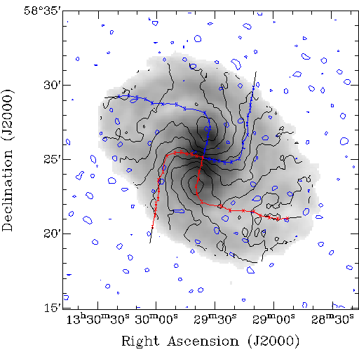 HI distributions (contours) are superimposed onto optical (i'-band)