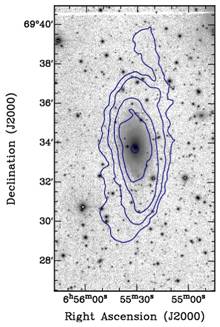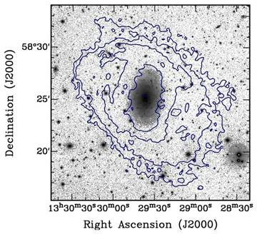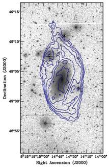 HI distributions (contours) are superimposed onto optical (i'-band)