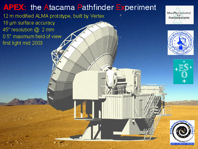 APEX will be located at 5000 meters in the Atacama plateau in Chile. This region is one of the driest places on earth. This makes the site ideal for millimeter-wave observations, as the limiting factor for ground-based observation sensitivity is noise from atmospheric water vapor fluctuations. The Atacama site can view most of the celestial sphere with good overlap with many other ground based telescopes, which will be needed for later follow-up observations to determine the redshifts of galaxy clusters.