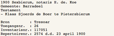naar Klaas Sjoerds de Boer gingen.