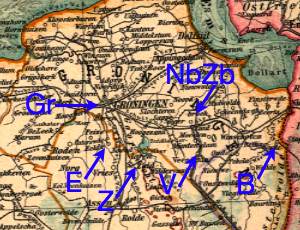 Kaart met de voor dit blad relevante plaatsnamen (afgekort).
