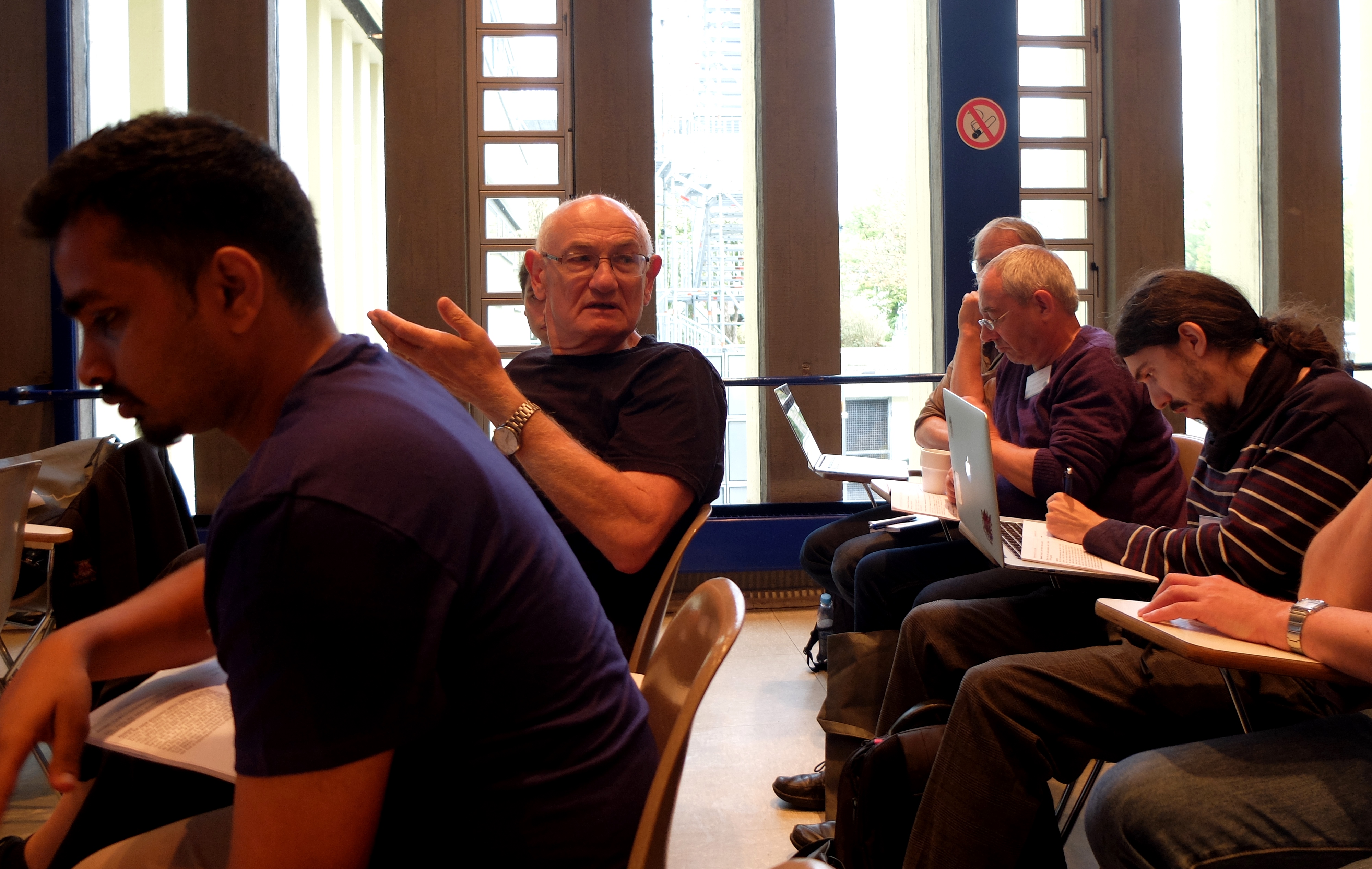 Moti Milgrom explaining (Bonn, September 2019; photo by J.Zdarska).