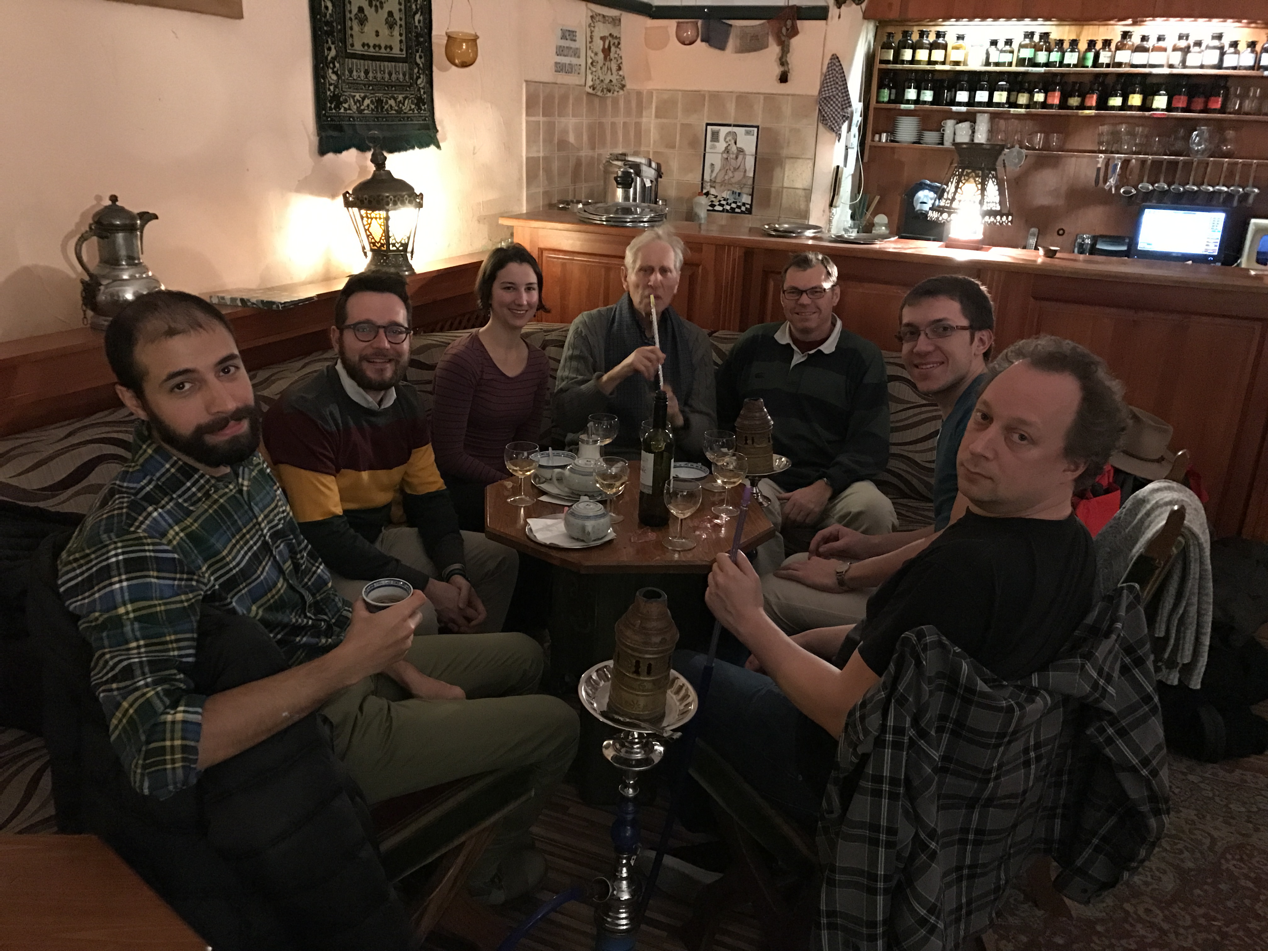 Aarseth M+1 Xmas Nbody meeting in Prague enjoying shisha, tea