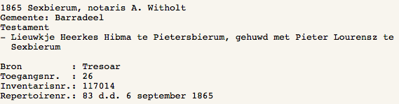In dit testament zal ze haar man Pieter onterfd en een en ander voor zoon Folkert geregeld hebben. |
