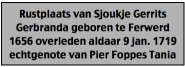 Sjoukje Gerrits Gerbranda heeft een aparte grafsteen in de kerk te Ferwerd