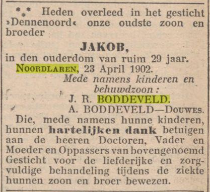 Jan Roelf Boddeveld (+1915) and Anna Douws (+1917) is being settled.