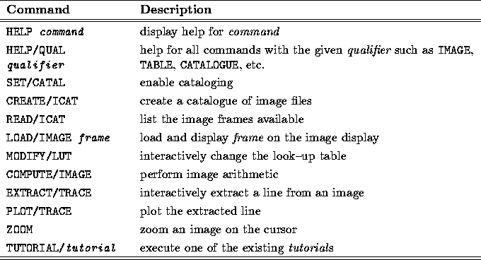 In table you will find a list of some of the most frequently used MIDAS commands. Refer to the detailed command description or the on--line HELP for more details