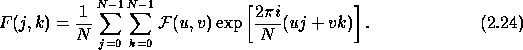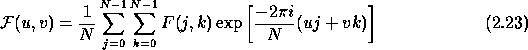 Whereas the transforms mentioned above only perform a non--linear rebinning of the data, the Fourier transform converts a spatial image into the frequency domain. This transform has two main applications namely analysis of periodic phenomena and convolution due to its special properties. The transform can be given as