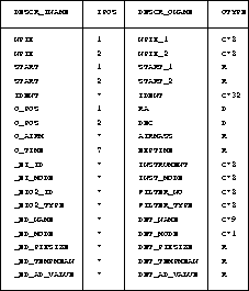 The list of pertinent MIDAS descriptors should be stored into a MIDAS table containing the following columns: