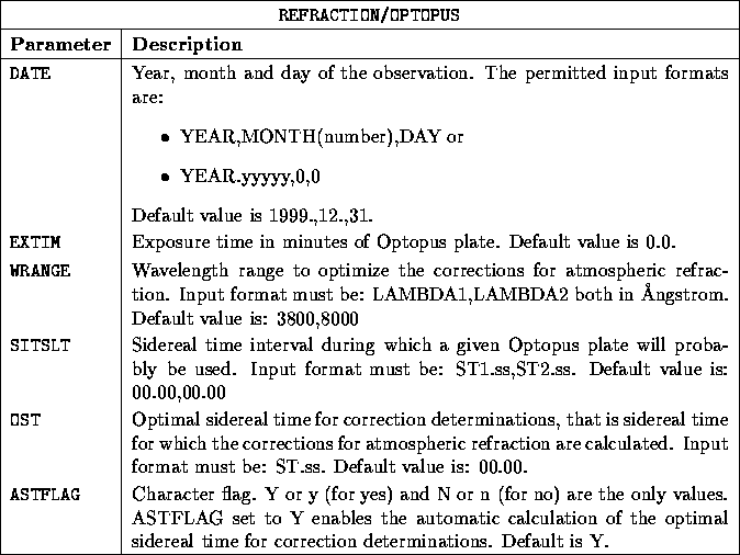 CREATE/OPTOPUS mydata mytable ? 2000.0 ! use another equinox