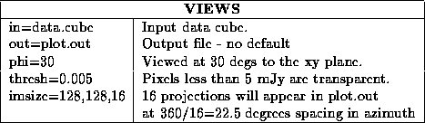 views generates a dataset which is a series of frames of a cube viewed as if the cube was rotated about its y axis. The view is also from an angle ``phi'' to the xz plane.