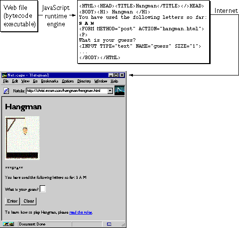 In general, this book does not discuss server-side JavaScript. However, this section gives a very brief overview of how server-side JavaScript applications work. For more detailed information, see Writing Server-Side JavaScript Applications.