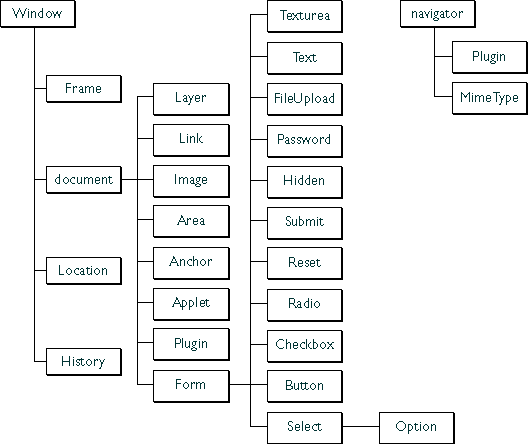 window, Frame, document, Form, location, and history objects. For more detailed information on these objects, see the JavaScript Reference.