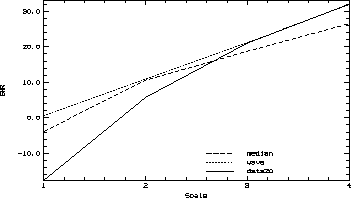 These criteria are not sufficient, they give no information on the resulting resolution. A complete criterion must take into account the resolution. For each dyadic scale, we can compute the correlation coefficient and the quadratic error between the wavelet transforms of the original and the restored images. Hence, we can compare, the quality of the restoration for each resolution.