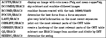 The online commands consists of commands for monitoring the data acquisition (via the OST table), commands for general image inspection, and commands for combining the incoming images. Additionally, a focus command helps the user to determine the best focus position of the telescope. Below follows a brief overview. For a detailed command description the reader is referred to the help files.