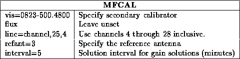 determines a flux density so that the rms antenna gains are 1. Again the interval parameter should be set to the calibrator scan length if the phase stability is good. If this is not so, then it should be set to a smaller value (1 to 0.1 minutes) with the caveats as noted in the step 1 above. If you do set it so a small value, there is an additional step (and decision) to be performed before you can interpolate the gain solutions onto your program source -- see Section 11.3.